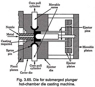 سیستمی که در شکل زیر نشان داده شده است یک ماشین دایکاست محفظه گرم است. همان طور که در شکل دیده می شود مجرای گردن غازی سیلندر تزریق در مواد مذاب غوطه ور است و در نتیجه در درجه حرارتی معادل نقطة ذوب مواد تزریقی، کار می کند. در این سیستم مواد مذاب در حداقل زمان و حداقل افت حرارت به داخل حفره قالب تزریق می شوند.
